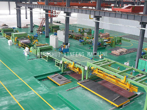 The sheet metal cutting line can do uncoiling, straightening, gauging, cross-cutting to length and stacking work. It mainly includes uncoiler, straightener, gauge, shearer, conveyor,stacker, hydraulic system, pneumatic system and electrical system, etc. The line can make sure of accurate feeding and shearing. It can be widely used in cold or hot rolled carbon steel, tinplate, stainless steel and all e other kinds of metal materials with surface coating. The cut to length line is controlled by PLC system. The information of length, shearing numbers and speed can be input to the PLC systems via HMI(Human Machine Interface) touch screen. When the needed shearing quantity is reached the line can stop automatically. The line speed can be adjusted, It has a gauge with high precision, and whole line can work automatically and operate easily, smooth plates can be made.